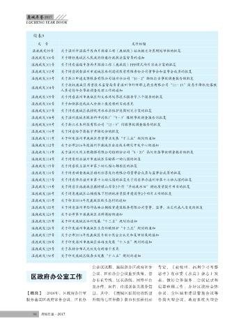 【概况】 2016年,区政府办公室 息。其中,《鹿城区谋划经济转型 会议、全区城市建设管理会议等