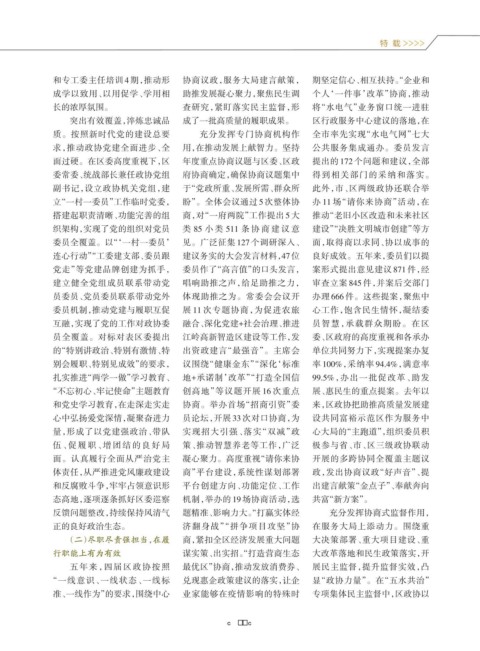 面过硬。在区委高度重视下,区 年度重点协商议题与区委、区政 提出的 172 个问题和建议,全部