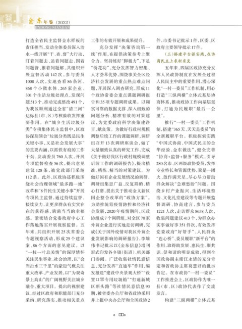案、86 个方面的意见建议。以 伟书记批示以《金东信息》增刊 作用,取得助发展、惠民生、聚共