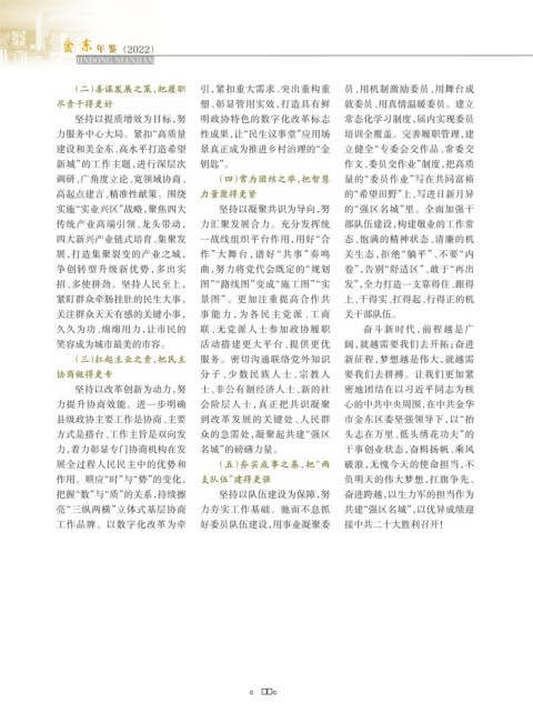 县级政协主要工作是协商、主要 到改革发展的关键处、人民群 市金东区委坚强领导下,以“抬