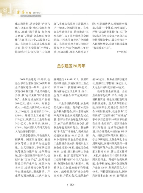 是金华市金东区设区 20 周年和 劲持续增强,实施区级以上重点 长,限额以上零售额128亿元,七