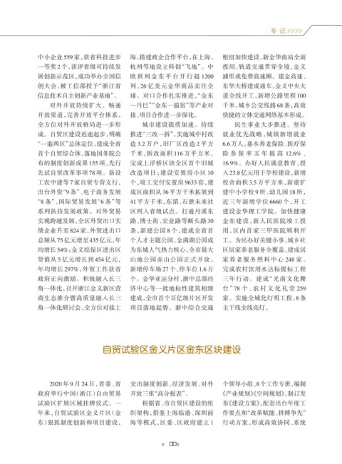 展创新示范区,成功举办全国信 欧 班 列 金 东 平 台 开 行 超 1200 浦形成免费高速圈。建金高速、