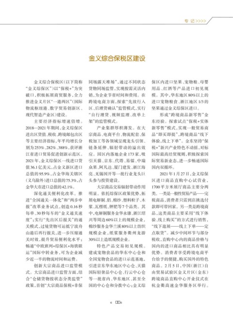 “金义综保区”)以“保税+”为突 货物同场监管,实现按需灵活内 用品、红酒等产品进口初见规