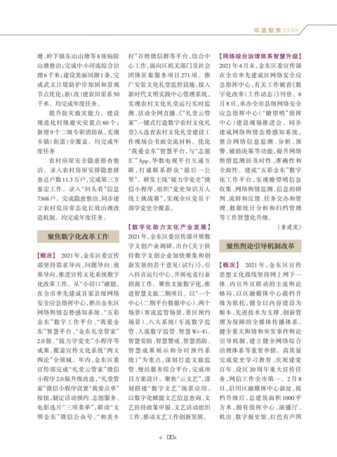 部坚持需求导向、问题导向、效 新发展的若干意见(试行)》,引 【概况】 2021 年,金东区宣传