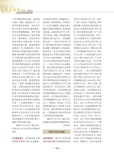 【艾青故居】 艾青故居位于傅 【经济建设】 2021年,金东区统 23.6%,全区产值超亿元的企业
