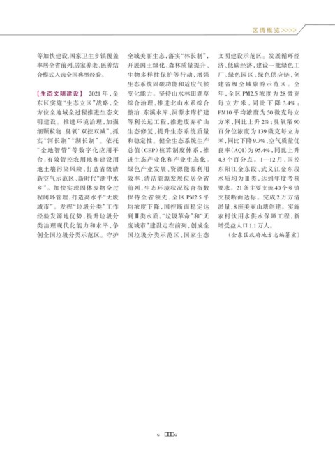 【生态文明建设】 2021 年,金 变化能力。坚持山水林田湖草 年,全区 PM2.5 浓度为 28 微克