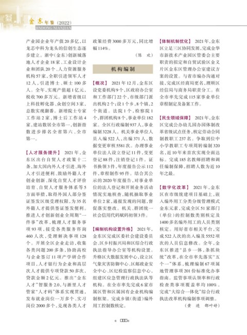 12 人 ,引 进 博 士 、硕 士 100 多 【概况】 2021 年 12 月,金东区 接,完成区经商局更名,理顺区