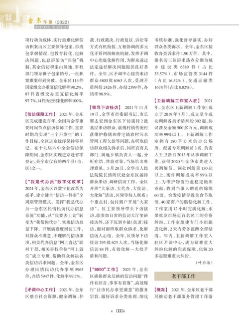 【矛调中心工作】 2021年,金东 行“让市民办事更满意”的服务 【概况】 2021年,金东区老干部