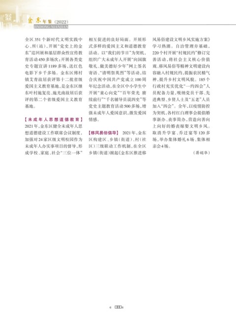 2021年,金东区健全未成年人思 上向好的婚丧嫁娶文明乡风。