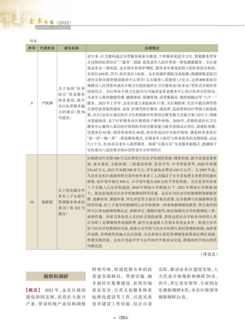 【概况】 2021 年,金东区政府 食品安全、公共文化服务体系 东视察调研 8 次,本市区级领导