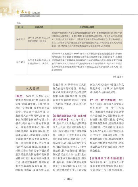 【概况】 2021 年,金东区人大 包案、项目包联等任务,促进区