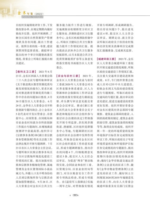 情况,常委会上听取汇报提出相 优质资源提质扩容等五条意见 【城建环保工委】 2021年,金东