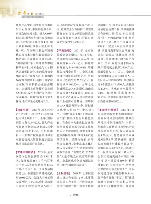 【招商引资】 2021年,金东区引 完 成 景 区 村 50 个 、景 区 镇 4 【美丽乡村提质】 2021 年,金