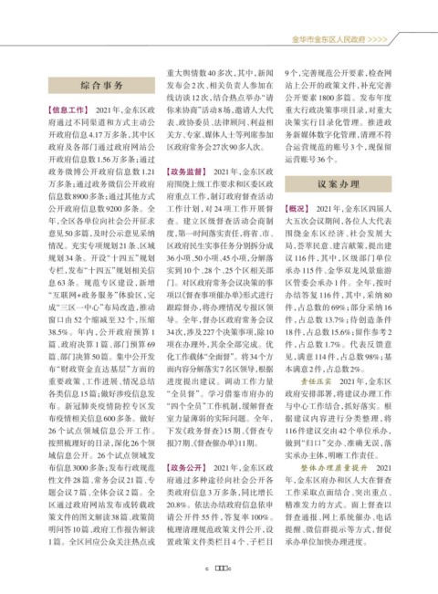 公开政府信息数 9200 多条。全 工作计划,对 24 项工作开展督 【概况】 2021年,金东区四届人