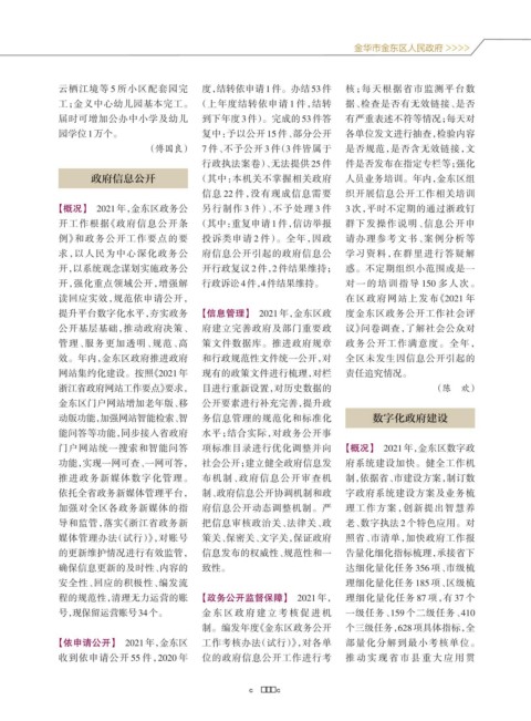 提升平台数字化水平,夯实政务 【信息管理】 2021年,金东区政 度金东区政务公开工作社会评