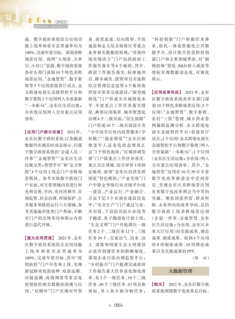 疫情防控相关数据的展现与应 任务、40 个三级任务、67 项具体 【概况】 2021年,金东区数字政