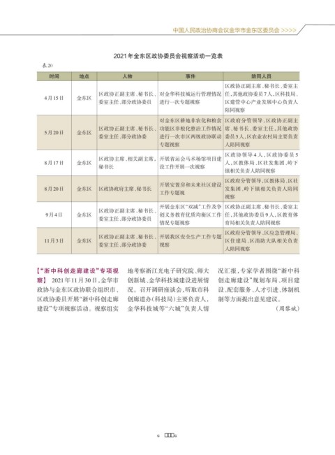 2021年金东区政协委员会视察活动一览表