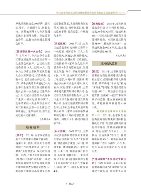 【概况】 2021年,金东区纪委监 区纪委监委根据市委关于开展 联动、实地验证”等方法,督促
