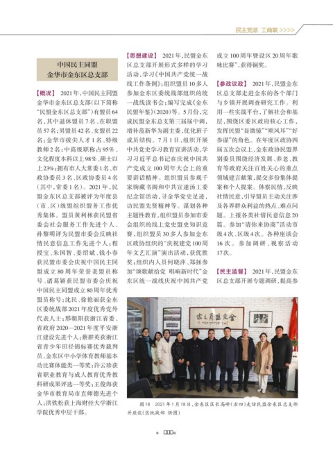 【概况】 2021年,中国民主同盟 参加金东区委统战部组织的统 区总支部走进金东的各个部门