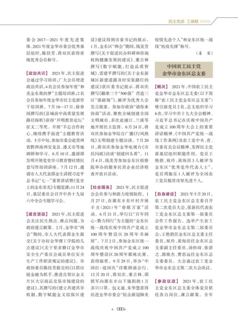 【政治共识】 2021年,民主促进 城》、雷建平撰写的《关于金东新 金华市金东区总支委