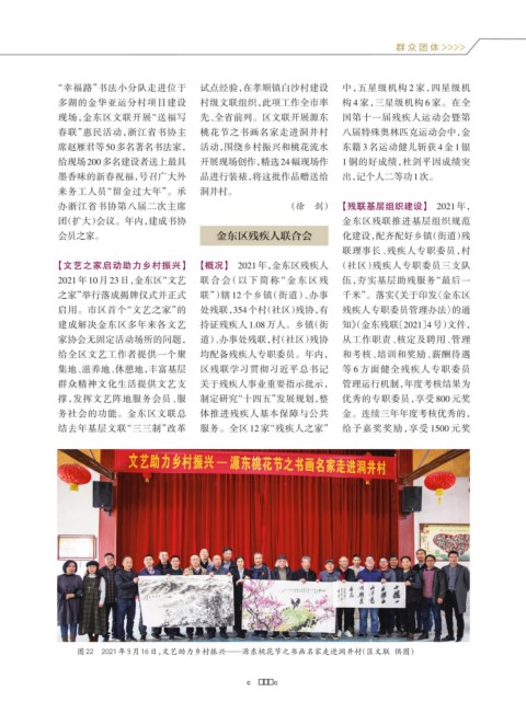 【文艺之家启动助力乡村振兴】 【概况】 2021年,金东区残疾人 (社区)残疾人专职委员三支队