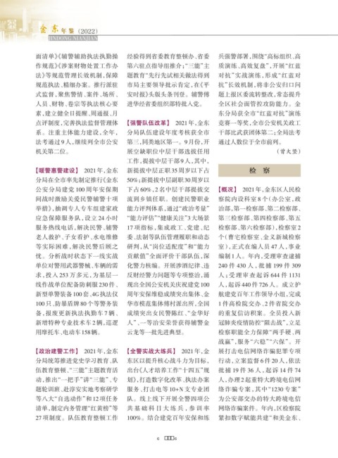公安分局建党 100 周年安保期 下占 60%,2 名中层干部提拔交 【概况】 2021年,金东区人民检
