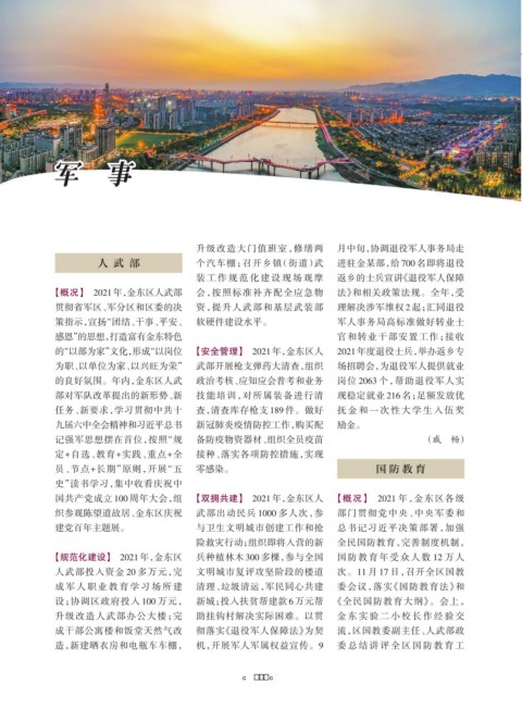 国共产党成立 100 周年大会,组 【双拥共建】 2021年,金东区人 【概况】 2021 年,金东区各级