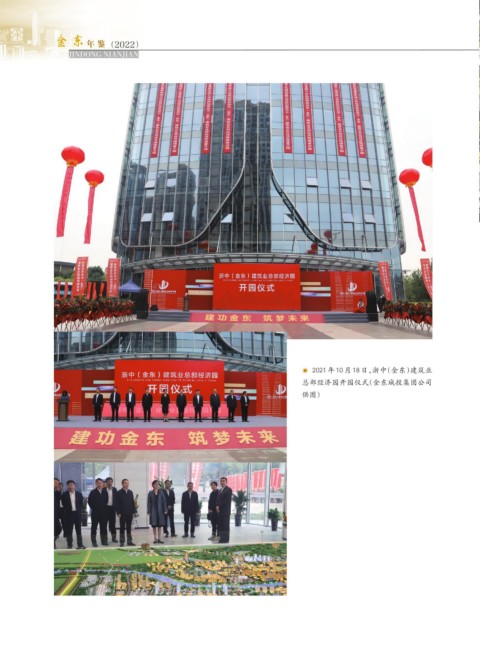 东 金 金 东 年 鉴 (2022) JINDONG NIANJIAN ◉ 2021 年 10 月 18 日,浙中(金东)建筑业 总部经济园开园仪式(金东城投集团公司 供图)