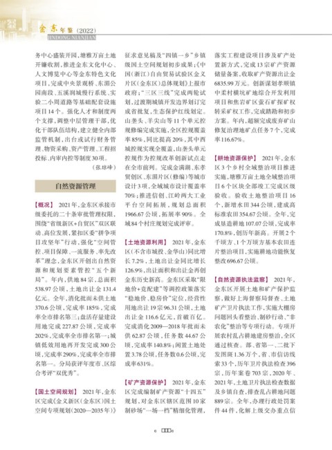 【国土空间规划】 2021年,金东 区完成编制矿产资源“十四五” 及乡镇自查,排查乱占耕地问题