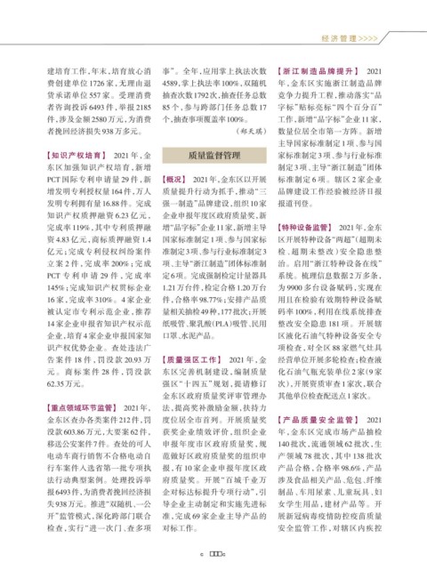 金东区查办各类案件 212 件,罚 度位居全市首列。开展质量奖 【产 品 质 量 安 全 监 管】 2021