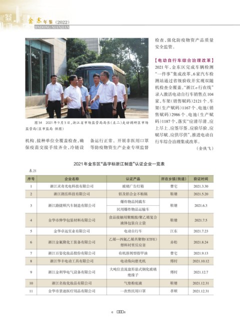 图 34 2021 年 9 月 3 日,浙江省市场监管局局长(左二)走访调研区市场 码)1187 个,落实“应清尽清、应