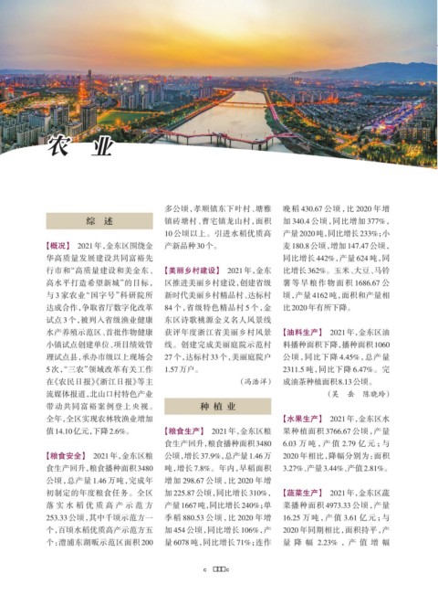 值14.10亿元,下降2.6%。 【粮食生产】 2021年,金东区粮 果种植面积 3766.67 公顷,产量