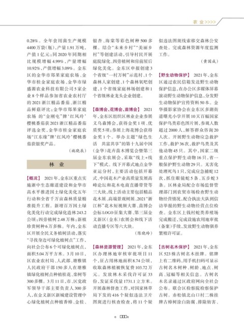 区的金华市郑果家庭农场、金 个省级“一村万树”示范村、1 个 【野生动物保护】 2021年,金东