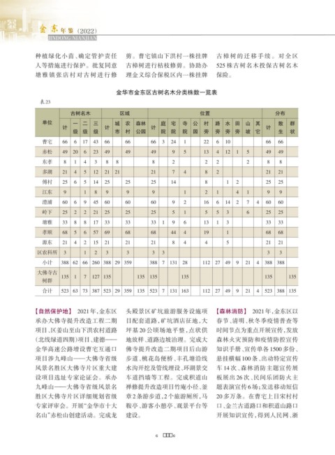 金华市金东区古树名木分类株数一览表