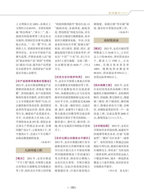 【概况】 2021 年,金东区推进 等文件要求,将农村公厕纳入 口覆盖率 99%,城乡一体化供水