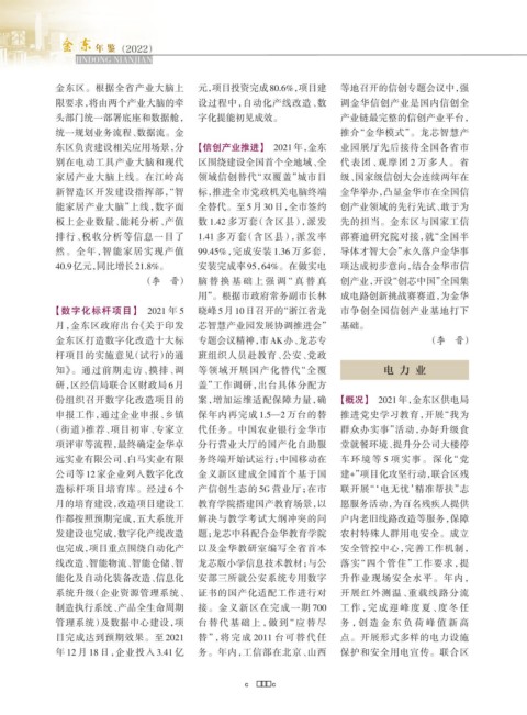 份组织召开数字化改造项目的 案,增加运维适配保障力量,确 【概况】 2021年,金东区供电局