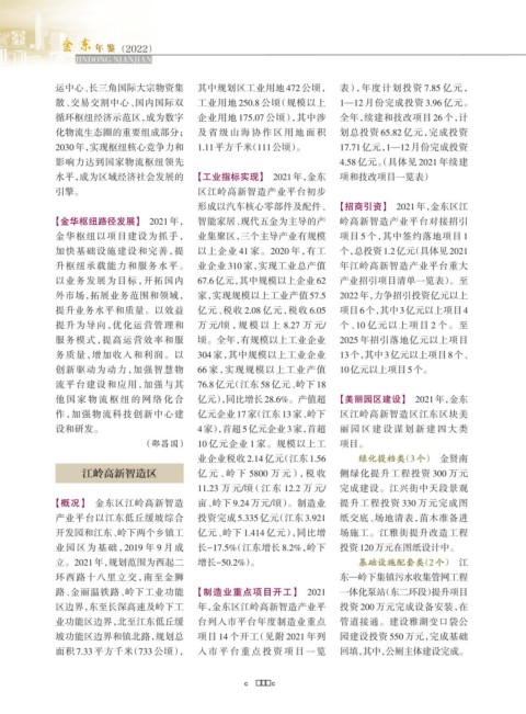 他 国 家 物 流 枢 纽 的 网 络 化 合 亿元),同比增长28.6%。产值超 【美丽园区建设】 2021年,金东