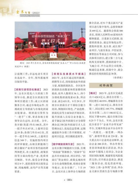 年,金东区优化六大招商工作 提高,驻外人数增至 36 人,四个 【概况】 2021年,金东区完成进
