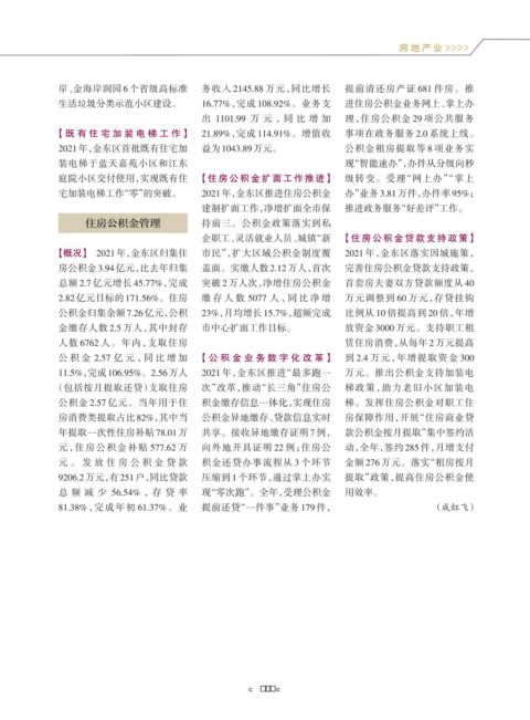 【概况】 2021年,金东区归集住 市民”,扩大区域公积金制度覆 2021 年,金东区落实因城施策,