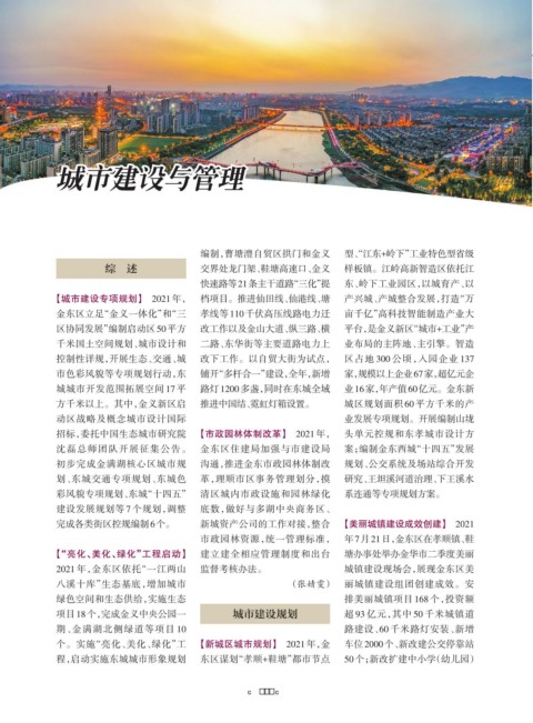 2021 年,金东区依托“一江两山 监督考核办法。 城镇建设现场会,展现金东区美