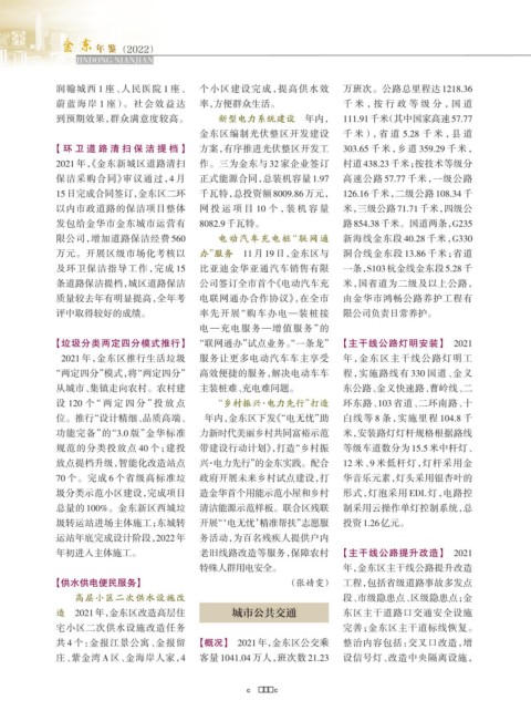2021 年,金东区推行生活垃圾 服务让更多电动汽车车主享受 年,金东区主干线公路灯明工