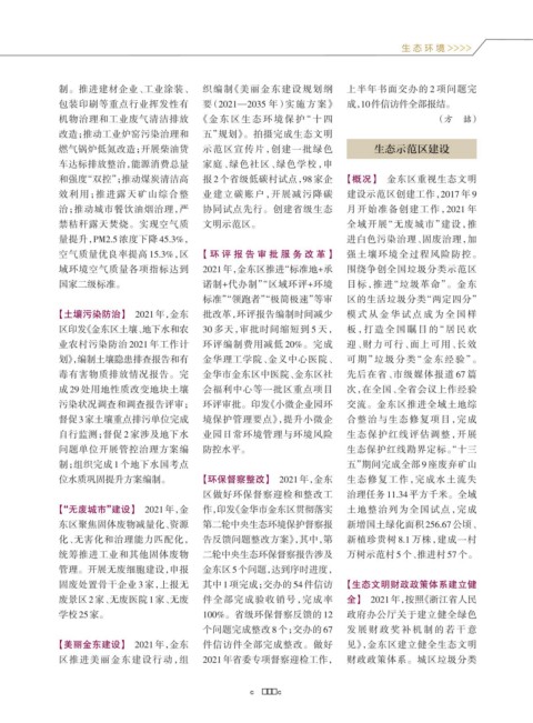 【美丽金东建设】 2021 年,金东 件信访件全部完成整改。做好 见》,金东区建立健全生态文明