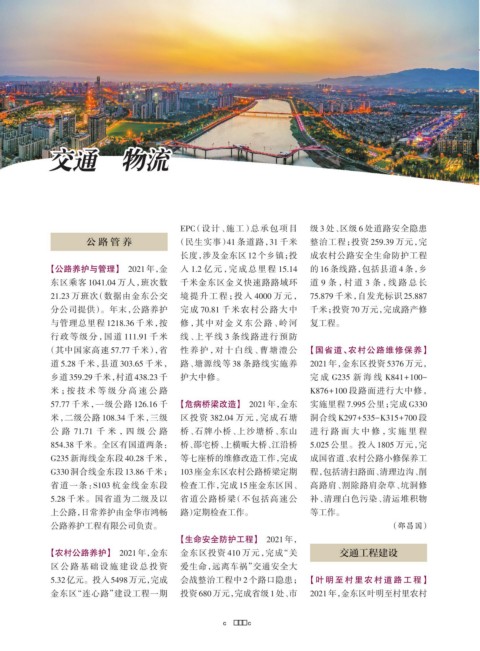 【农村公路养护】 2021年,金东 金东区投资 410 万元,完成“关 交通工程建设