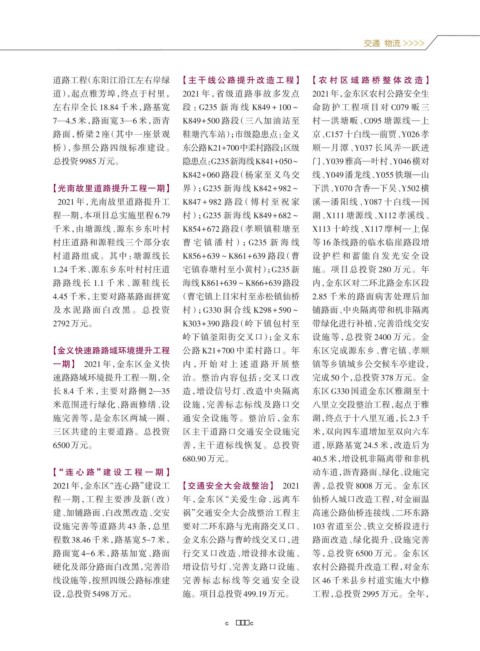 2021年,金东区“连心路”建设工 【交通安全大会战整治】 2021 善,总投资 8008 万元。金东区
