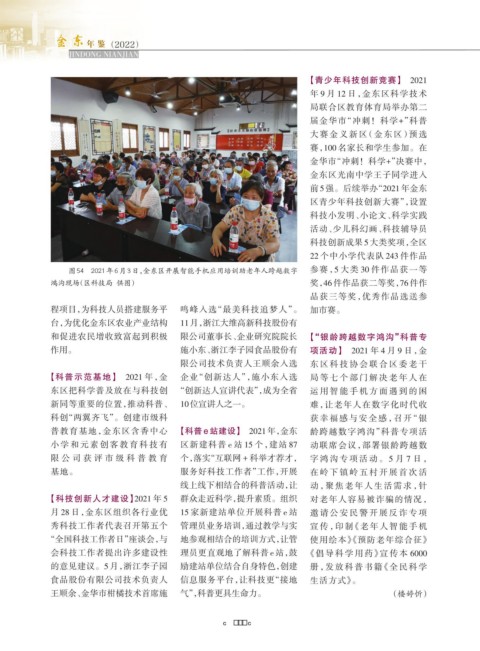 图54 2021年6月3日,金东区开展智能手机应用培训助老年人跨越数字 参赛,5 大类 30 件作品获一等