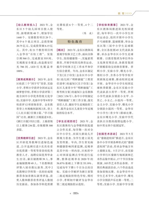 元。其中,有 21 个教育项目列 【概况】 2021年,金东区教体局 赛,全区各组别 45 支代表队参