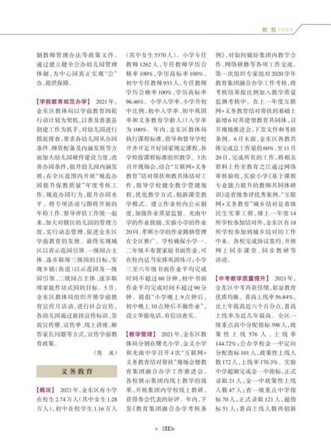 【概况】 2021年,金东区有小学 果,开展集团内学校线上教研, 人数 47 人;省一级重点中学指