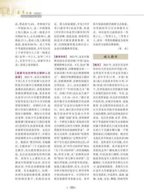 名),普高上线率提升。 暨课程峰会活动。5月,协办“数 【概况】 2021年,金东区有金华