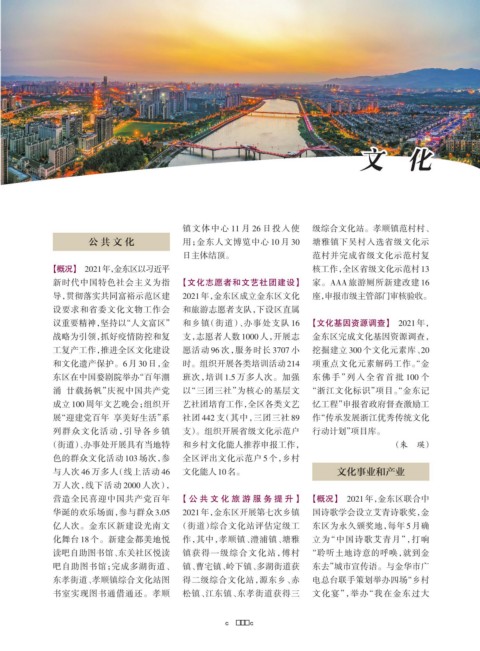 营造全民喜迎中国共产党百年 【公 共 文 化 旅 游 服 务 提 升】 【概况】 2021年,金东区联合中