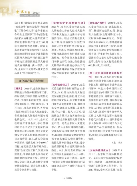 实施“金东记忆工程”,发展文物 隐患。9 月,制定发放张贴 156 【文物局挂牌成立】 2021 年 9